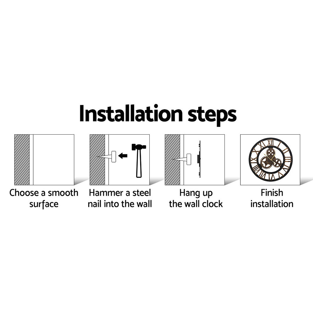 Add some timeless appeal to your home and keep time in style with our retro-style Wall Clock. The exquisite timepiece features steampunk design elements such as large cogwheels and a rustic finish. Its large 3D Roman numerals also further the look and make for an easy-to-read clock face with sophisticated aesthetics. The accurate time teller is easy to set up, requiring only one AA battery to get it moving (battery not included). Most importantly, our wall clock is crafted from quality eco-friendly and non-toxic materials, with the hands being made from metal for long lasting durability. Place it in your living room, dining room, bedroom or even your office for a retro makeover.