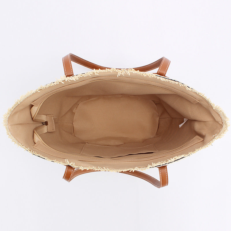 This stylish striped woven beach tote bag is perfect for summer vacations, beach outings, or daily commutes. Made with durable straw-like materials, it combines functionality and elegance, offering a spacious interior with secure zipper closure and an inner pocket for organizing your essentials.